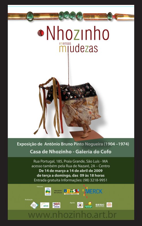 Além da abertura da exposição, que fica em cartaz até o dia 14 de abril (das 9h às 18h), acontecerá hoje (13) o lançamento do livro Nhozinho – imensas miudezas (2007), edição bilíngue sobre a vida e obra do artista, com artigos de Lélia Coelho Frota (escritora e historiadora da arte), Luciana Carvalho (antropóloga), Maria Michol (pesquisadora e, à época, Superintendente de Cultura Popular da Secretaria de Estado da Cultura do Maranhão), Paulo Herkenhoff (crítico e curador de arte) e Zeca Baleiro (cantor e compositor) e prefácio do poeta e crítico Ferreira Gullar (um artigo sobre Nhozinho publicado na revista Manchete em 1956).