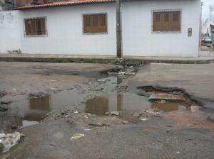 O carro do lixo não pode passar, pois na esquina de 21 de abril com Castro Alves, há essa vala, secular (ou milenar, sei lá), que já foi “consertada” na gestão de João Castelo. Talvez a foto não traduza a “grandeza” da obra, traduzida sonoramente em grandes estrondos (e posteriores xingamentos) quando motoristas desavisados tentam passar por seu lado mais fundo.