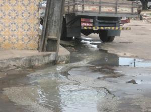 Em frente àquela vala, esta, donde jorra água, não sei se potável, dada a aparente limpeza da mesma, ou se de esgoto.