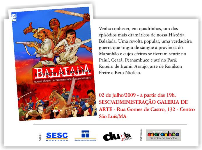 Alguns “artistas” irão calar, com medo de perderem a boquinha, de não mais serem “ajudados” (sim, meus caros, no Maranhão, isso ainda é possível) etc. Não é o caso de Iramir e cia.: a revista Balaiada tem texto de apresentação de Joãozinho Ribeiro.