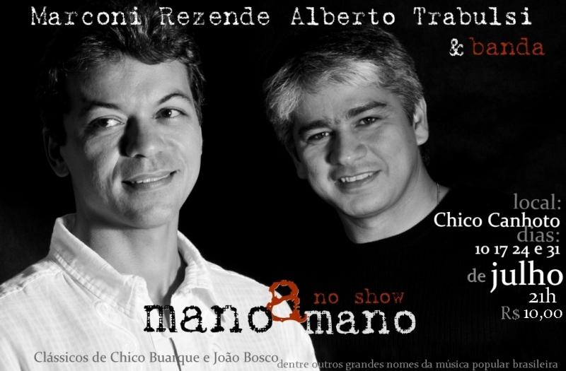 Tango de Carlos Gardel, Esteban Celedonio Flores e José Razzano, Mano a mano batiza o encontro de Marconi Rezende e Alberto Trabulsi em que eles valorizam nomes como Chico Buarque e João Bosco.