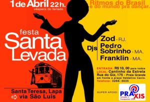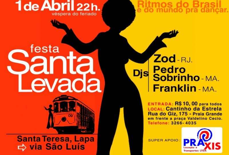 Véspera de feriado, correria louca. Aproveitando que não dei expediente, passei o dia correndo, vendo pequenos detalhes domésticos, uma lâmpada aqui, uma descarga ali (isto é, dando outro tipo de expediente), quase esqueço de lembrar aos poucos-mas-fieis leitores deste blogue da Santa Levada, que acontece logo mais, às 22h, no Restaurante Cantinho da Estrela (Rua do Giz, 175, Praia Grande, em frente à Praça Valdelino Cécio).