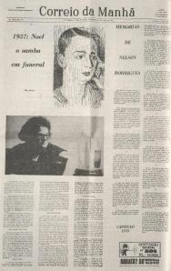 Com dificuldades para postar nos dois últimos dias – muita coisa para fazer em pouquíssimo tempo – encerro com o texto acima a Semana Noel Rosa. 1937: Noel, o samba em funeral foi publicado em 4 de maio de 1967 no Correio da Manhã (RJ) por ocasião dos 30 anos de falecimento do Poeta da Vila. O hoje conhecidíssimo Ruy Castro, autor do artigo, estreava na imprensa (é seu primeiro artigo assinado) e dividia a página com ninguém menos que Nelson Rodrigues, que publicava suas memórias. Este blogueiro teve o trabalho de re-digitar o artigo, cujo fac-símile encontrei em Tempestade de ritmos: jazz e música popular no século XX (Companhia das Letras, 415 p., 2007).