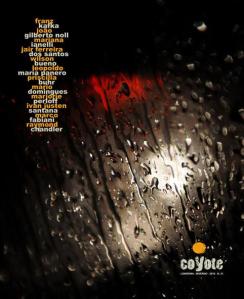 Quem avisa é o amigo-editor Ademir Assunção. Eu já havia comprado as minhas no Sebo do Bac. Sim, no plural: há tempos compro, pelo menos quatro edições da Coyote: leio-coleciono uma e dou uma para a prima Érika, que formou em Letras (ainda não entreguei o número 21, o que farei junto da Pitomba). As restantes também são dadas, com uma rotatividade entre o(a)s presenteado(a)s. Ocasional. Sem critérios rígidos. Ou mesmo (pré-)estabelecidos. É minha forma de tornar a Coyote mais conhecida por aqui. Ou de (tentar) fazer um(a) ou outro(a) se interessar por poesia, literatura e essas coisas que este mundo tem insistido em dizer que são chatas ou cansativas. Bem, a quem ainda não conhece a Coyote, fica a dica.