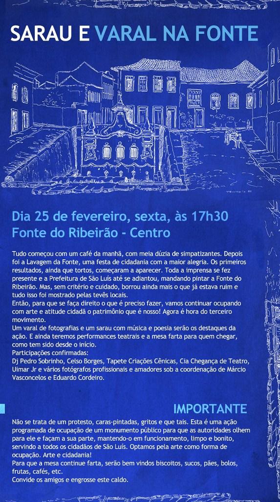 Apesar do nome, a proposta do Papoético é discutir diversos assuntos relacionados à cultura, artes e outras áreas do conhecimento: literatura, música, cinema, teatro, artes plásticas. Este objetivo vem sendo atingido? Sim, ao final de cada encontro peço sugestões de novos temas de forma democrática, e sempre surgem propostas estimulantes. Também estamos atentos ao que vem ocorrendo na cidade em termos de produção cultural, quando acontece um lançamento de livro chamamos o escritor para falar sobre seu trabalho. Recentemente, Celso Borges, Bruno Azevedo e outros lançaram a revista Pitomba e, logo em seguida, eles foram convidados para falarem sobre o projeto. No momento, está acontecendo um movimento de vários artistas na Fonte do Ribeirão chamado Fonte Viva. Estão sendo realizadas ações de denúncia sobre o abandono desse monumento pelas autoridades e nós iremos debater essa questão do patrimônio histórico como um todo em breve. São Luís completará 400 anos daqui a pouco mais de um ano e não se ouve nada das autoridades até agora sobre o assunto…