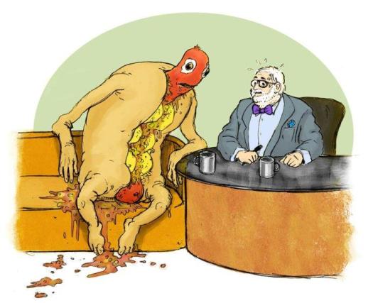 Coautor de O Monstro Souza com Bruno Azevêdo, Gabriel Girnos desenhou o personagem principal no sofá do gordo, especialmente para a ocasião.