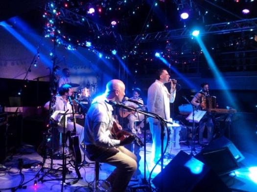 Vestido de branco, qual um chef, a camisa com aqueles botões não ao centro, Arnaldo Antunes demonstra alegria o tempo inteiro sobre o palco, talvez feliz com sua ótima banda – ou melhor, constelação: Betão Aguiar (contrabaixo), Chico Salém (violão), Edgard Scandurra (violão), Marcelo Aguiar (bateria) e Marcelo Jeneci (sanfona e teclado) –, talvez feliz com a receptividade do público, com o novo disco, ou certamente com tudo isso ao mesmo tempo. É sincero o seu “espero que vocês estejam se divertindo aí tanto quanto nós aqui” dirigido ao público. Nem mesmo algumas falhas no som o irritaram. Ou ao menos ele não demonstrou. Nem mesmo a graça sem graça do despropositado grito de “toca Raul!”, se é que ele ouviu.