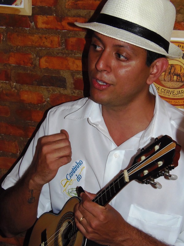 Você falou que veio tocar cavaquinho aos 19 anos. Antes, você passou por outro instrumento? Eu comecei a me envolver com violão aos 17, 18 anos, comecei a fazer aula, fiz três meses, só que o cara enrolava, eu comecei a ser autodidata. Comecei a ver uns amigos meus tocando cavaquinho, aquele som, me encantei, foi paixão à primeira vista. Eu comprei meu primeiro cavaquinho dum amigo meu, chamado Gustavo Smith, passei dois anos pesquisando, autodidata, fiz prova para a Escola e passei, de primeira, graças a Deus. Daí continuei, ainda peguei dois anos de aula quando era ali na Beira-Mar. Quem fez a prova comigo foi o professor Charles, na época. Foi uma oportunidade muito boa, por que quando a gente vai estudar música a gente vê que não sabe de nada, e até hoje, eu te digo: eu ainda estou aprendendo. Cada profissional que chega, como a gente já teve vários cursos de choro, eu até acho bom vir mais cursos de choro para São Luís. Teve um que a Petrobras trouxe, e a Vale, foi o primeiro [curso] de choro que teve aqui, que veio a [cavaquinista] Luciana Rabello. Tu é louco! Uma didática de palheta, que eu fiquei: “cara, eu não sei nada”. Depois fiz o segundo, e nunca parei de estudar. Comecei em bloco tradicional, e tal, quando entrei na Escola vi que não sabia nada, e comecei a estudar choro.