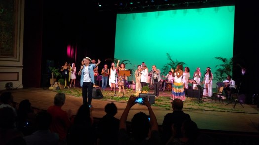 “Este teatro foi erguido por mãos possivelmente ainda escravizadas. Aqui tem o suor de negros que trabalharam em sua construção. É um teatro popular, não é um teatro das elites”, mandou, sem disfarçar algum desconforto e nervosismo em estar naquele palco, longe de mise-en-scène. “Eu sou da zona, do botequim”, afirmou, citando lugares em que se sentia mais à vontade. Cantou a modinha Lua do mangue, cujo cenário é uma zona portuária, acompanhado apenas do piano de Rui Mário, do sete cordas de Mano Lopes e do violoncelo de Jorlielson.