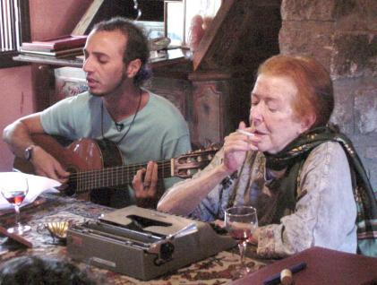 Zeca Baleiro e Hilda Hilst trabalhando nos poemas do disco. Foto do encarte de Ode descontínua e remota para flauta e oboé – De Ariana para Dionísio. Reprodução