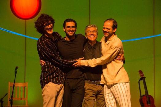 Dignos da linhagem, os filhos de Caetano Veloso esbanjam talento, compondo, cantando e tocando. O pai ao violão vê o trio se revezar entre piano, baixo e violão (Zeca), violão e baixo (Tom) e violão, violoncelo, baixo e percussão (Moreno).