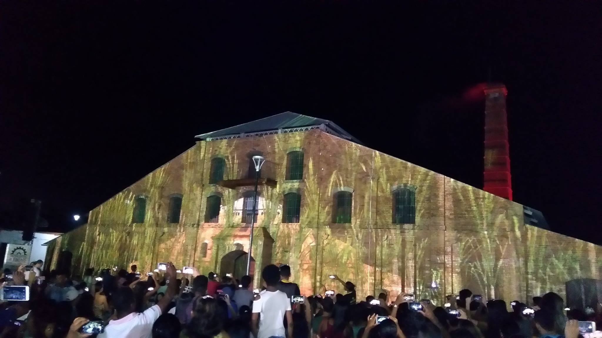 O vídeo mapping exibido na fachada da construção contou a história do Engenho Central, passeando por manifestações culturais do Maranhão. Foi difícil conter as lágrimas ao ver projetado um bumba-meu-boi ao som da toada Urro do Boi, de Coxinho, eterno amo do Boi de Pindaré.