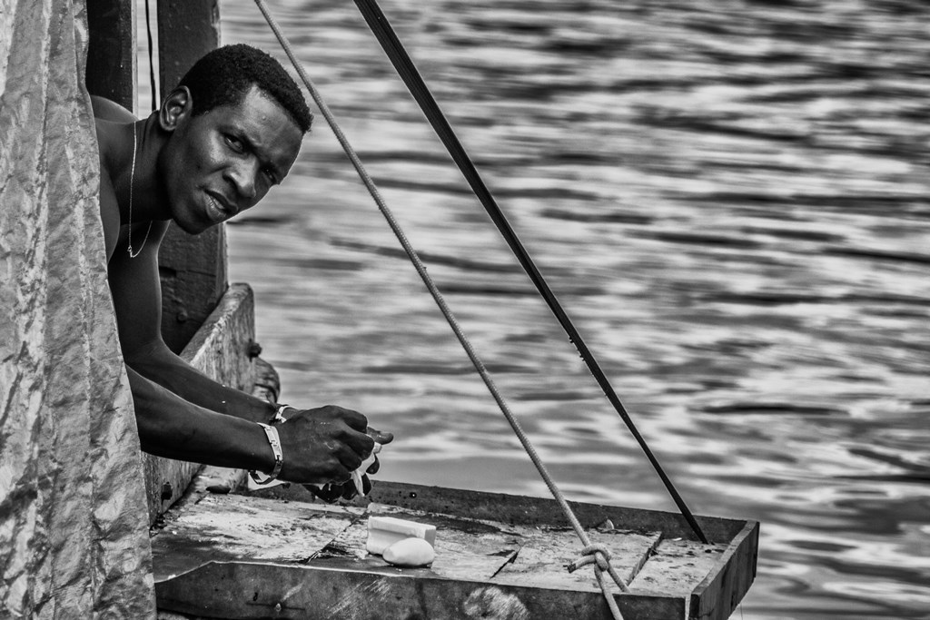 Homens e mulheres, velhos e crianças em sua vida cotidiana: os vincos do tempo no close de um rosto, sorrisos, pés que caminham, mãos que preparam uma farofa de tartaruga. As fotografias de (Re)conhecendo a Amazônia negra são impressas em madeira.