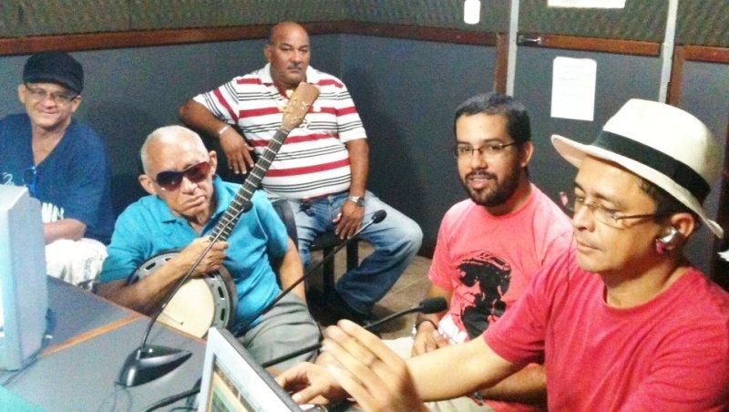 Na segunda foto o titular do programa e o blogueiro escolhendo algo de Visitação para tocar; na primeira, além dos já citados, o produtor Tote da Madre Deus (de boné), Biné do Banjo e o assistente Douglas da Liberdade.