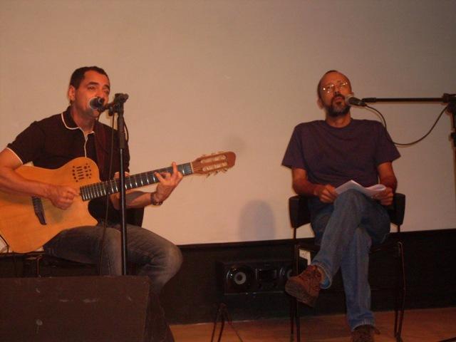 Como ele mesmo contou, para gargalhadas do ótimo público presente: “quando eu lancei meu primeiro disco, me ligaram e disseram que tinham conseguido botar uma música minha na nova novela do Manoel Carlos, “Por Amor”; eu sempre fui noveleiro, sabia tudo, elenco, ficha técnica, trilha sonora, ficava disputando com minha irmã Lúcia [Santos, poeta] para saber quem tinha mais conhecimentos novelísticos; eu voltei a assistir novela e fiquei esperando, mas os capítulos passavam e nada da música; lá pelo capítulo 45, eu já quase desistindo de acompanhar, achando que não ia rolar, o personagem de Antônio Fagundes deu um beijo de cinema na Cássia Kis e a música tocou por dois minutos e meio, um tempão para televisão, no horário nobre; eu fiquei emocionado, chorei, mas depois a música nunca mais tocou, pois o personagem de Antônio Fagundes trocou a Cássia Kis pela Regina Duarte; tinha o dedo podre, o Fagundes”. E atacou de “Bandeira” (Zeca Baleiro), com o público cantando junto.