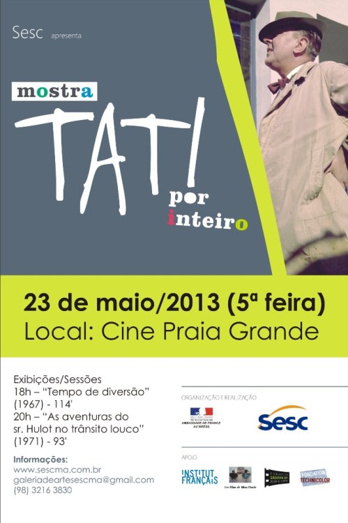 Poema de Celso Borges que eu trago da caixa de comentários ao espaço principal do blogue. Promoção do Sesc, a mostra Tati por inteiro segue até sábado no Cine Praia Grande, de graça (ingressos devem ser retirados com meia hora de antecedência na bilheteria do cinema). Abaixo, programação d’hoje, que nunca é demais repetir, Tati, Tati, Tati…