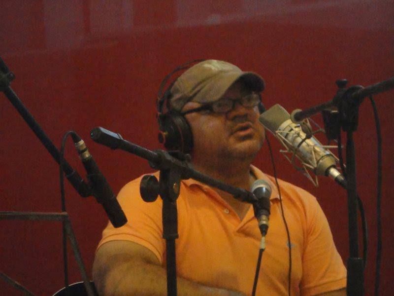 A grife do rádio e o Homem de vícios antigos nos estúdios da Nova 1290. Acervo pessoal
