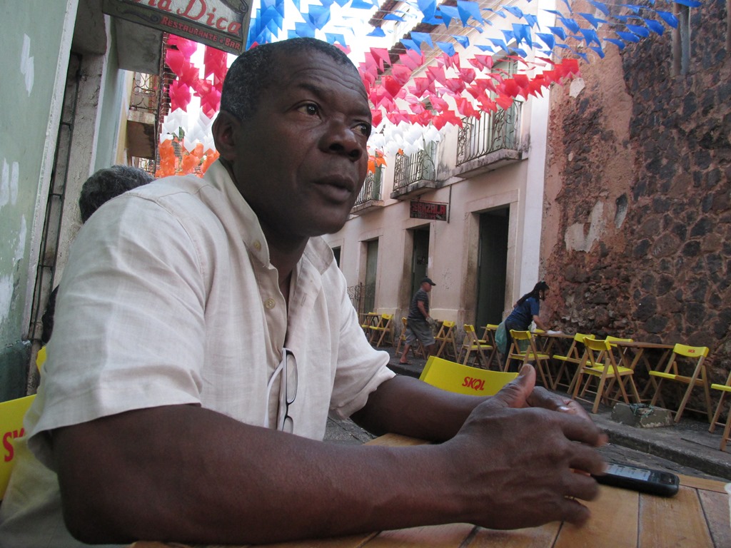 À distância em São Paulo, como você faz para manter o vínculo com a Casa Fanti-Ashanti? Eu acendo minhas velinhas, minhas coisas, e por isso eu venho para cá, recarregar minha bateria, não só na música, mas principalmente minha bateria espiritual, vir ao terreiro, tocar para os orixás, cantar, fazer parte dos rituais. Essa é a principal energia que eu venho buscar. É como se fosse meu carregador de energia vital. Essa é minha busca. Se ficar muito tempo fora, você fica carente, mais fraco, voltando você vai recarregando esse ciclo. Meu sonho de consumo é equilibrar, seis meses aqui e seis meses lá, não direto, um aqui, dois lá, dois aqui, um lá. Se isso for possível através da música, vai ser minha realização como artista. Nunca sonhei em ser o mega-famoso de não poder parar nos botecos e tomar uma cerveja. É legal, bom ser reconhecido, mas não quero não ter a liberdade. Quero ser reconhecido, mas não precisa ser tanto [risos]. Quero continuar tendo a liberdade de brincar, tambor de crioula, bloco tradicional, ir para a Madre Deus, essa é a vantagem de não ser tão famoso. Eu quero estar no meio do povo, nasci do povo, sou povo, gosto de estar nessa folia. Você olha no olho das pessoas, se emociona ao ouvir uma toada.