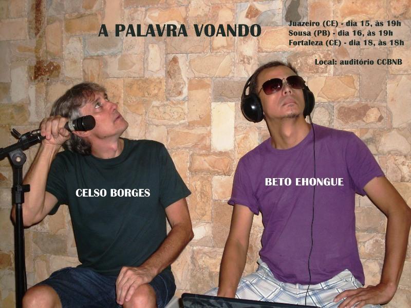 O autor da frase acima, o piauiense Torquato Neto, é um dos letristas revisitados pelo poeta Celso Borges no espetáculo A palavra voando, em que divide o palco com o músico, compositor e DJ Beto Ehongue, vocalista e letrista das bandas Negoka’apor e Canelas Preta (sic).