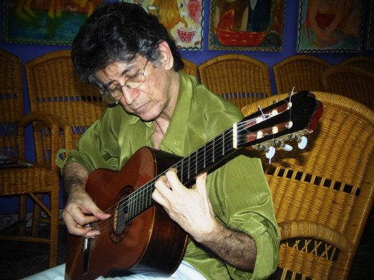 Quem foram os teus mestres do violão? Na verdade eu fiz um caminho como o que Hermeto Pascoal fez: do autodidatismo. Eu não tive propriamente nenhum professor. A única coisa que eu tive na formação foi um curso com Ian Guest, que é um papa. 80% da classe artística brasileira, dos compositores, passou por ele. Ele deu um curso aqui em São Luís e eu me destaquei muito nesse curso, ele me deu o diploma por antecipação. Eu sou uma pessoa que observo. Algumas coisas observei de João Pedro, Turíbio [Santos], Jodacil [Damasceno], mas nunca tive assim um cara que me desse aula; eu sempre pesquisei, fui um autodidata.